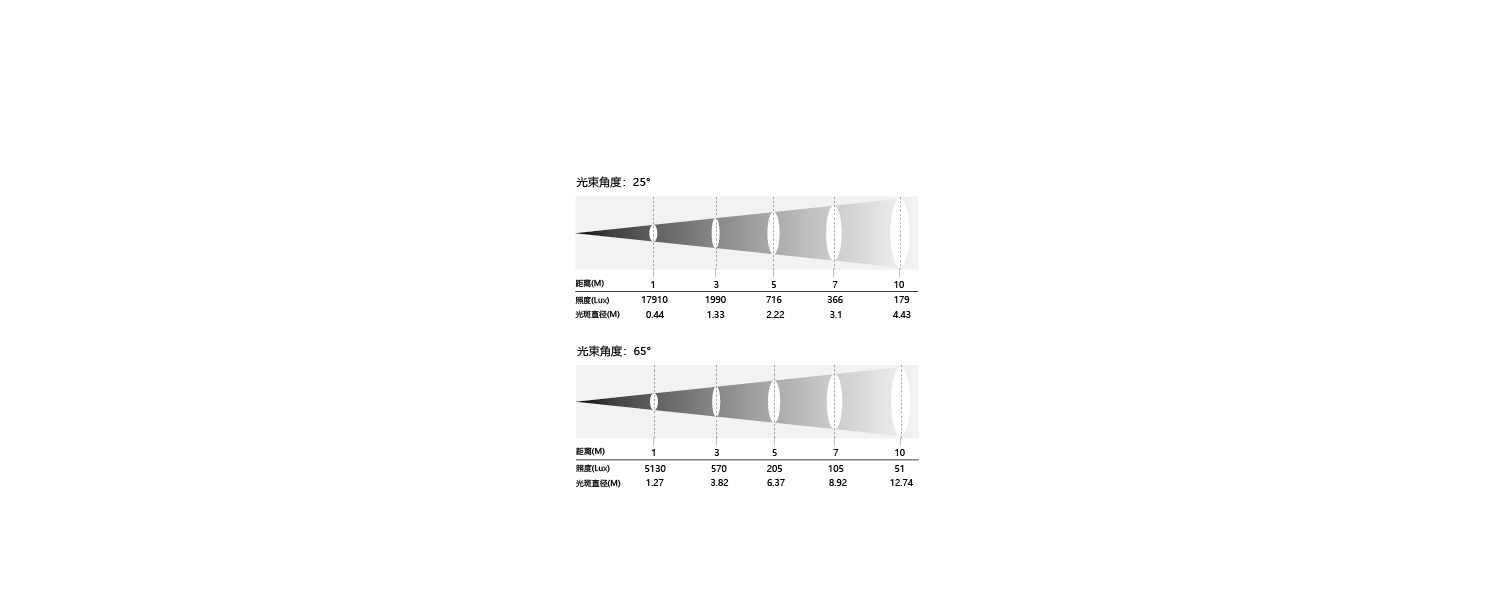 亮度5米距離750 Lux(25°)