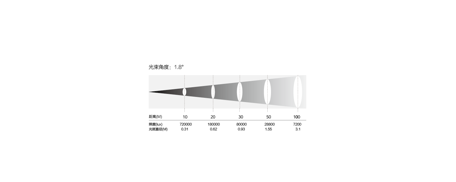 153mm鏡頭,1.8°極窄光束角度