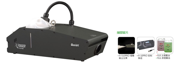 X-510PRO ( 1000W ) 及 X-515PRO ( 1500W ) 煙霧機型,是 X-PRO 系列的主力機型,同時也是專業市場中的高階產品,其流線的外型,涵蓋著百分之百的純鋁鑄電熱管,而幫浦在運轉時非常安靜,整體電路設計,具有高效保護裝置,常有效率,能夠完全融入專業的演出